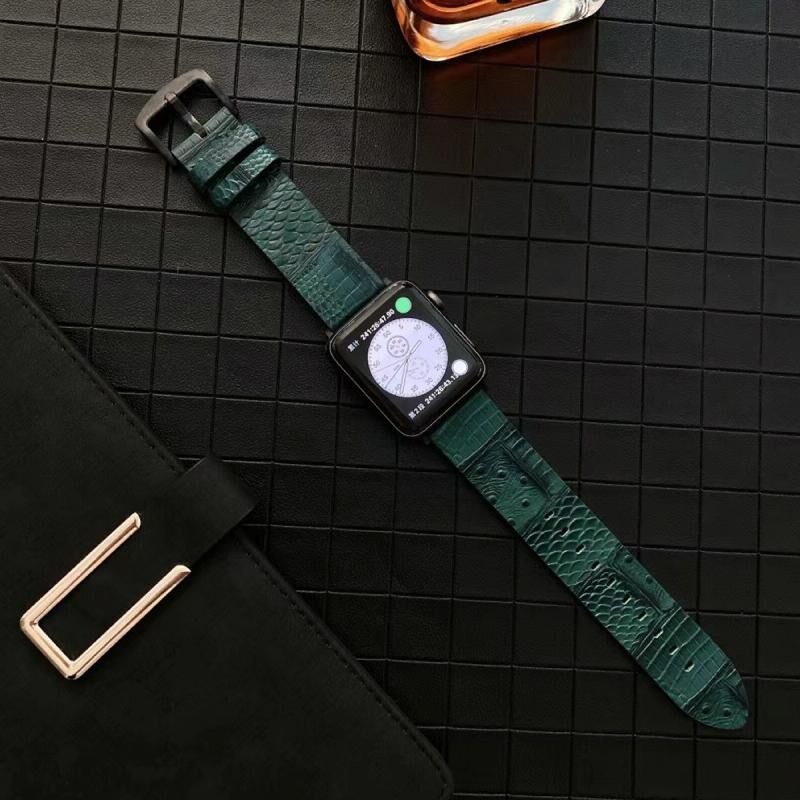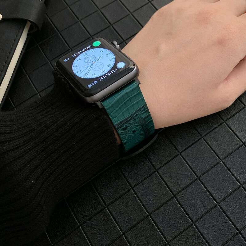 Λουράκι ρολογιού από γνήσιο δέρμα με ανάγλυφο κροκόδειλο και στρουθοκάμηλο για Apple Watch Series 9&8&7 41mm / SE 3&SE 2&6&SE&5&4 40mm / 3&2&1 38mm (πράσινο)