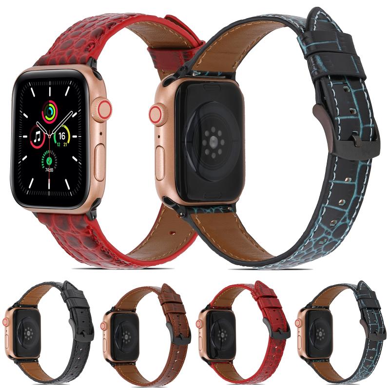 Λουράκι ρολογιού από δέρμα με υφή κροκόδειλου για Apple Watch Series 9&8&7 41mm / SE 3&SE 2&6&SE&5&4 40mm / 3&2&1 38mm (Κόκκινο)