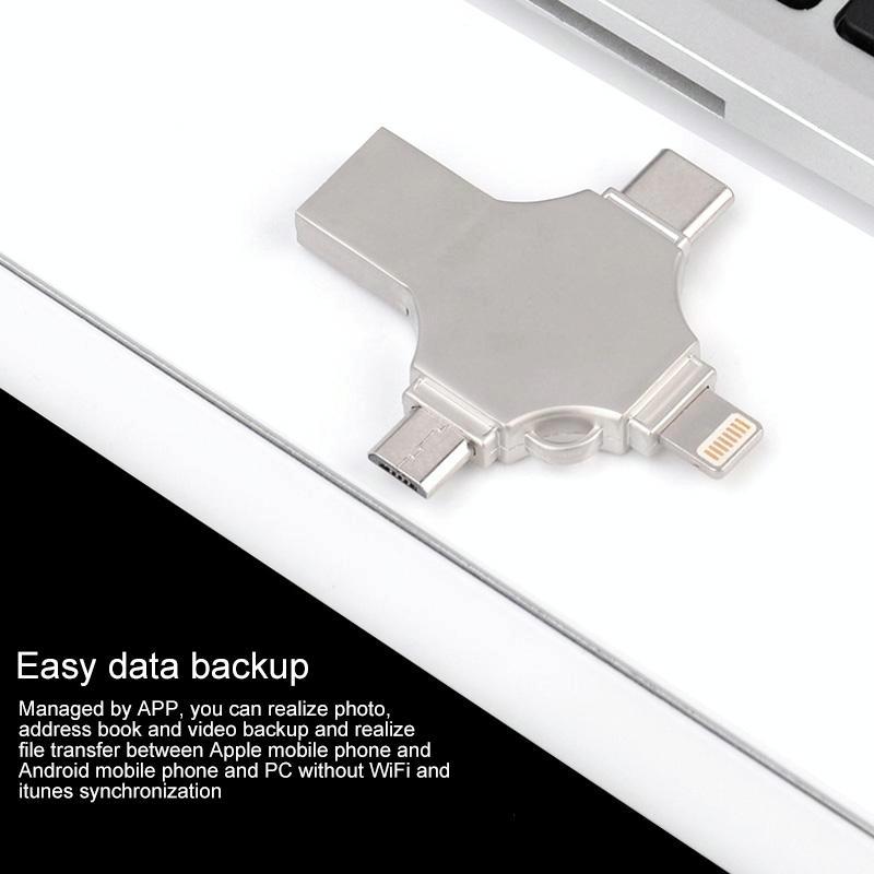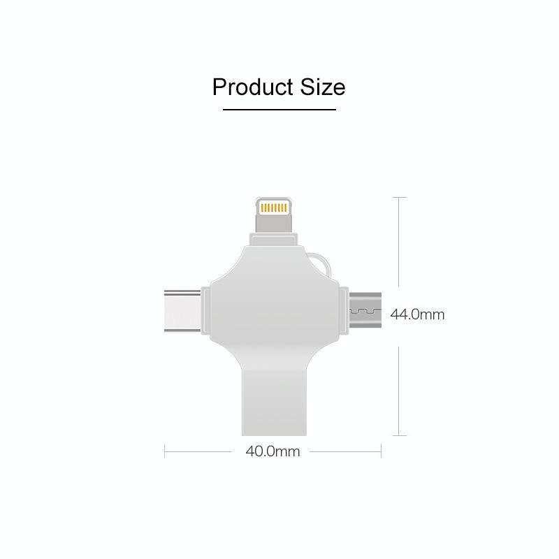 Cross 4 in 1 16GB 8 Pin + Micro USB + USB-C / Type-C + USB 3.0 Metal Flash Disk(Silver)