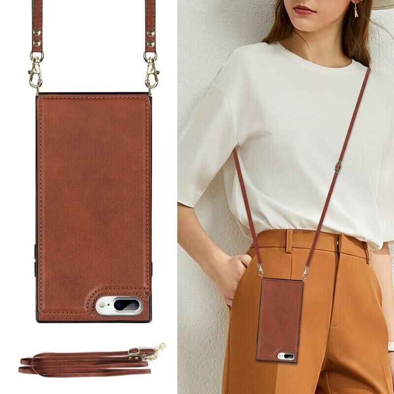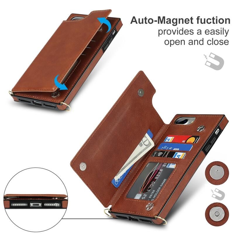 Cross-body Square Double Buckle Flip Card Bag TPU+PU Case with Card Slots & Wallet & Photo & Strap For iPhone 8 Plus / 7 Plus(Brown)
