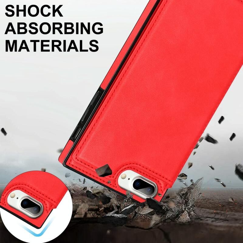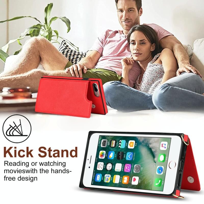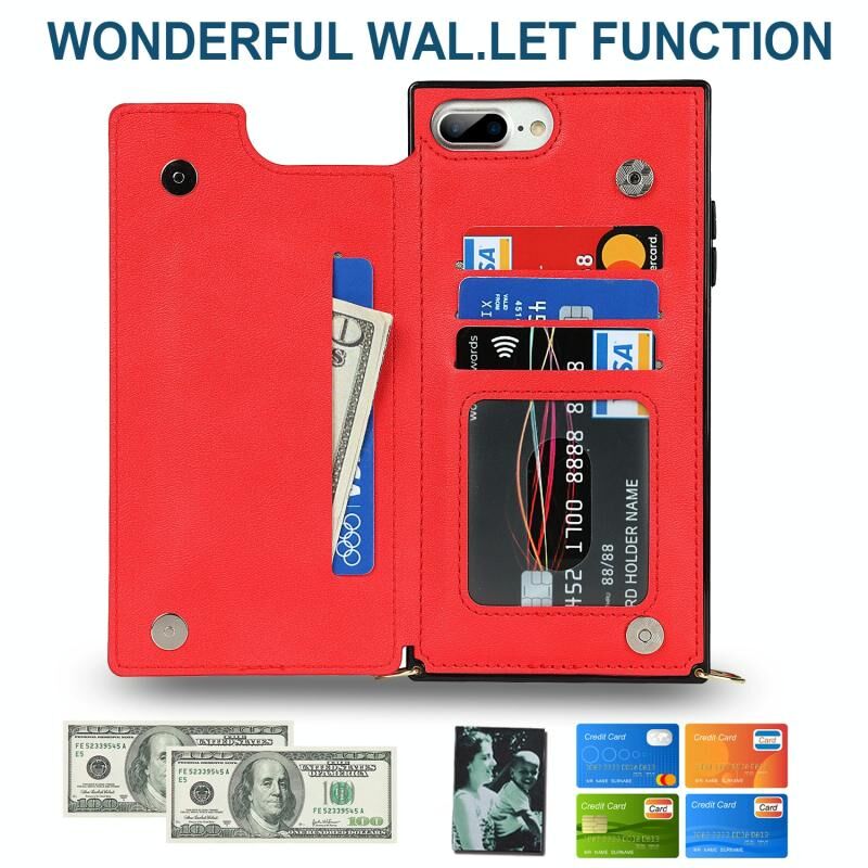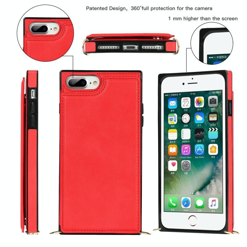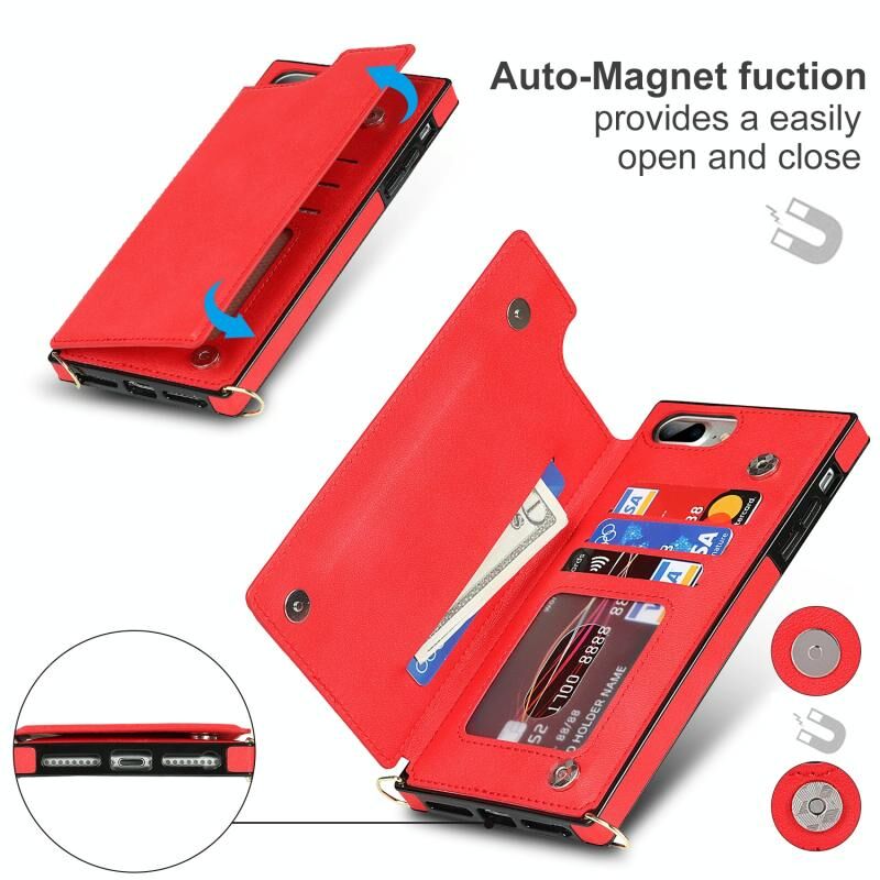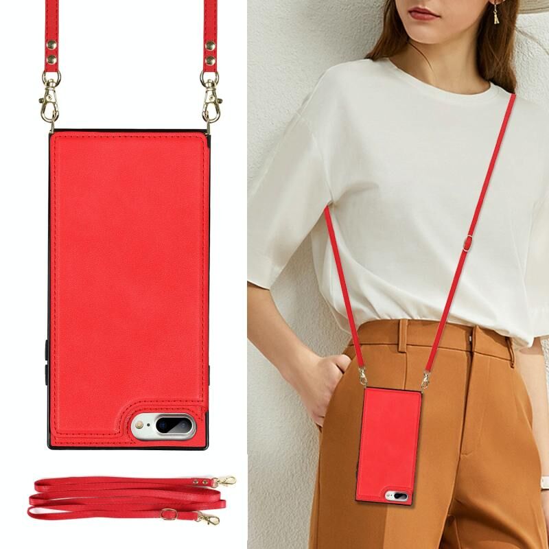 Cross-body Square Double Buckle Flip Card Bag TPU+PU Case with Card Slots & Wallet & Photo & Strap For iPhone 8 Plus / 7 Plus(Red)