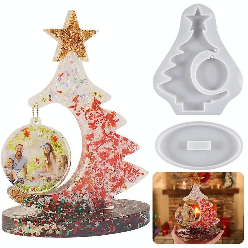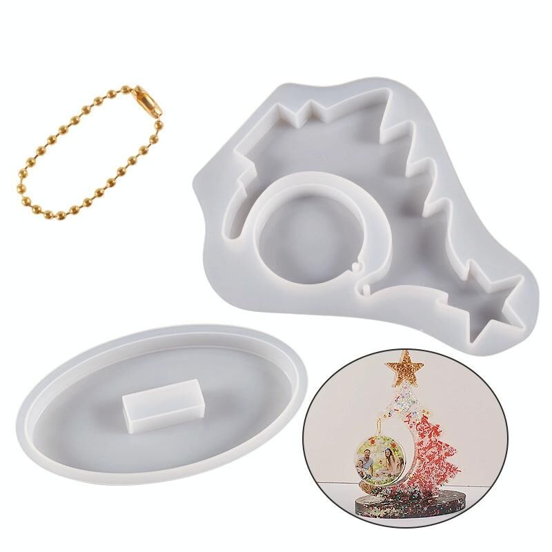 Crystal Epoxy Resin Christmas Tree Silicone Mold With 10pcs Gold Bead Chain
