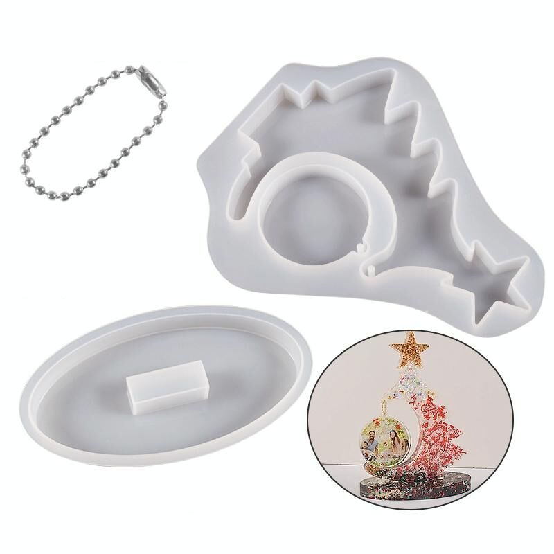 Crystal Epoxy Resin Christmas Tree Silicone Mold With 10pcs Silver Bead Chain