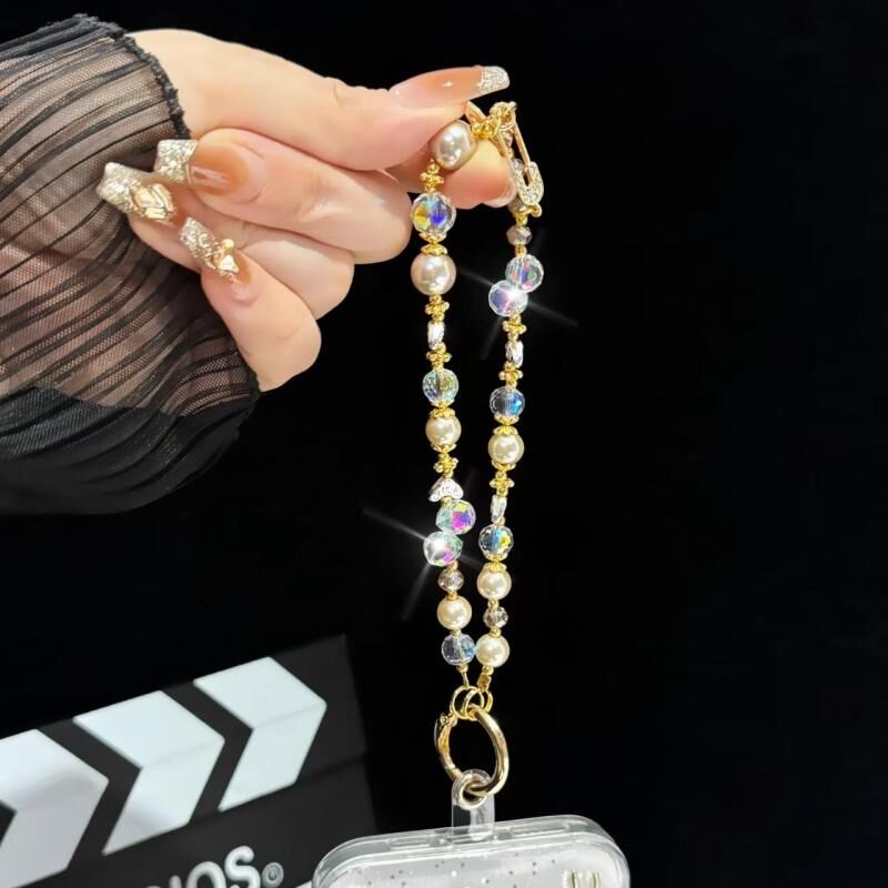 Κομμάτι για κινητό τηλέφωνο από κρύσταλλο, μαργαριτάρι και κράμα σατινέ (Λευκό)