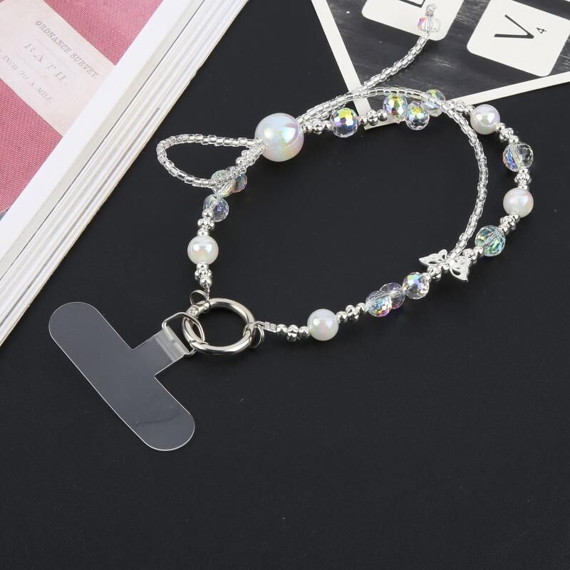 Κρυστάλλινο μαργαριτάρι Σύντομη αλυσίδα Anti-lost κινητό τηλέφωνο Short Lanyard (Λευκό)
