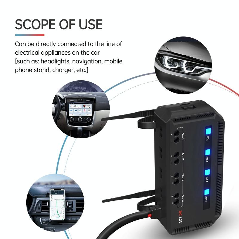 11. Scope of product use: it can be directly connected to the circuit of electrical appliances in the car, such as: headlights, navigation, mobile phone holder, charger, etc.