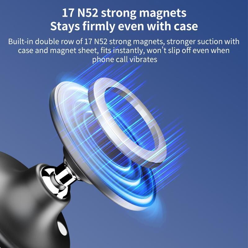 3. Μαγνητική Αναρρόφηση: Διαθέτοντας ένα ειδικά σχεδιασμένο μεταλλικό πάνελ, ο ισχυρός μαγνήτης συγκρατεί με ασφάλεια το τηλέφωνό σας στη θέση του, ακόμη και κατά τη διάρκεια απότομων φρεναρισμάτων ή δύσκολων διαδρομών. Απελευθερώνει τα χέρια σας, εξασφαλίζοντας ασφαλέστερη οδήγηση.