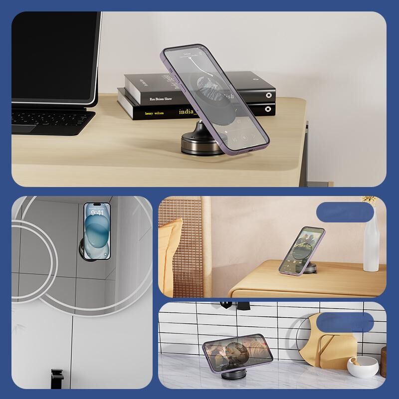 4. Εύκολη Ευελιξία: Μαγνητική βάση τηλεφώνου με αναρρόφηση, σχεδιασμένη για όσους εκτιμούν την αποδοτικότητα, ρυθμίζεται εύκολα σε οποιαδήποτε γωνία με σχεδιασμό περιστροφής 360°, ώστε η οθόνη σας να είναι πάντα εκεί που τη χρειάζεστε για εύκολη, hands-free πρόσβαση στην πλοήγηση, τις κλήσεις και τη μουσική.