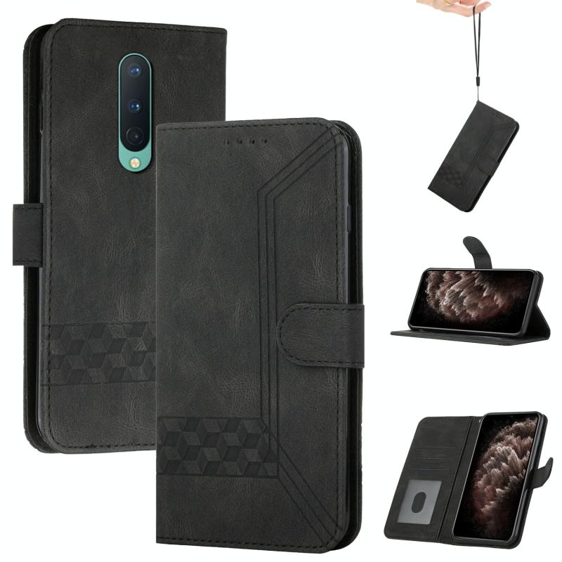 Cubic Skin Feel Flip Leather Phone Case For OnePlus 8(Black)