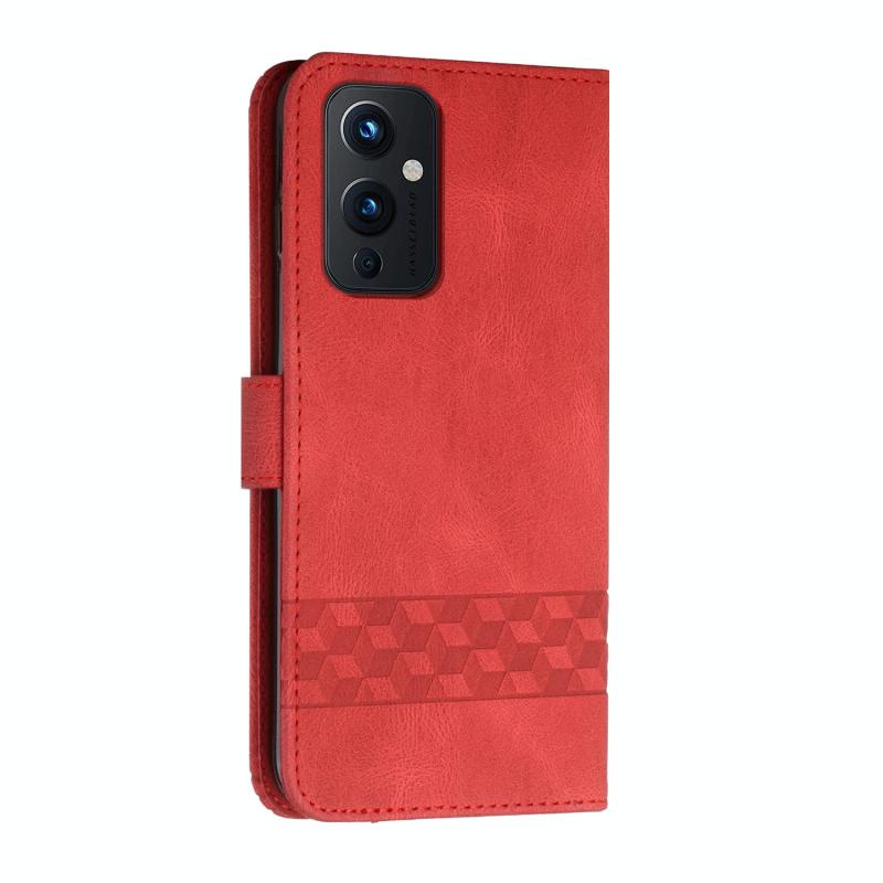 Cubic Skin Feel Flip Leather Phone Case For OnePlus 9(Red)