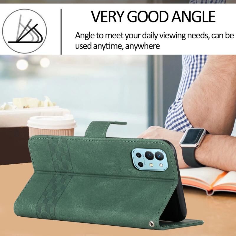 Cubic Skin Feel Flip Leather Phone Case For OnePlus 9R(Green)