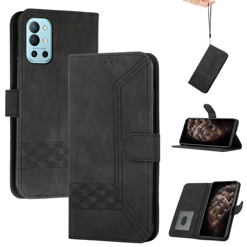 Cubic Skin Feel Flip Leather Phone Case For OnePlus 9R Pro(Black)