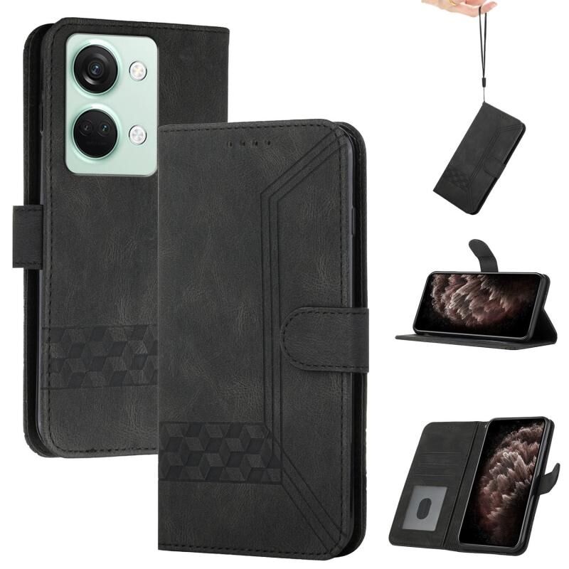 Cubic Skin Feel Flip δέρμα τηλέφωνο υπόθεση για OnePlus Ace 2V (μαύρο)