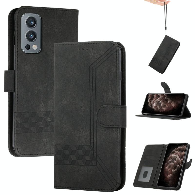 Cubic Skin Feel Flip Leather Phone Case For OnePlus Nord 2 5G(Black)