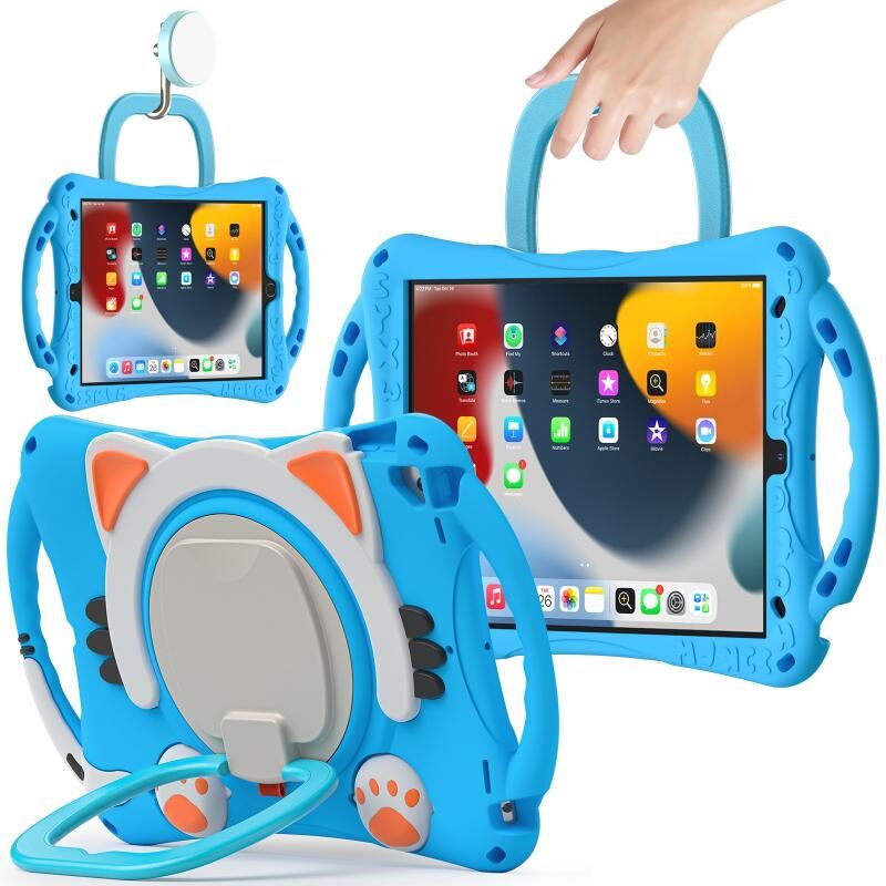 Χαριτωμένη Θήκη Ταμπλέτας Σιλικόνης για Παιδιά με Βασιλιά Γάτα, Αντικραδασμική με Στήριξη & Λουρί Ώμου & Λαβή για iPad 10.2 2019 / 2020 / 2021 / Pro 10.5 (Μαύρο Πορτοκαλί)