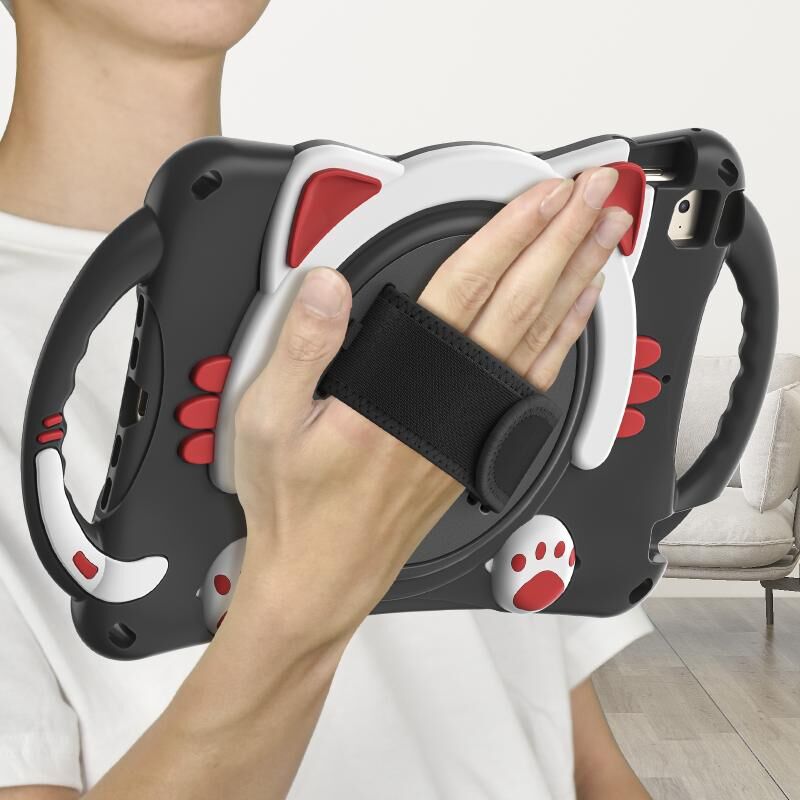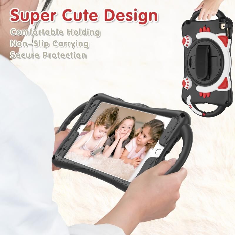 Χαριτωμένη Θήκη Ταμπλέτας Σιλικόνης για Παιδιά με Βασιλιά Γάτα, Ανθεκτική στις Πτώσεις με Στήριξη & Λουρί Ώμου & Λαβή για iPad mini 5 / 4 / 3 / 2 /1 (Ροζ)