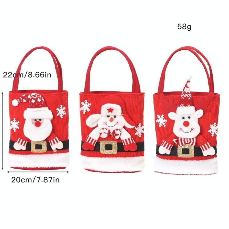 1. Υλικό: πλεκτό ύφασμα + βαμβάκι PP 2. Χρήση: συσκευασία μήλων, καραμέλων, δώρων, χριστουγεννιάτικη διακόσμηση κ.λπ. 3. Χοντρό πλεκτό ύφασμα, απαλό και άνετο, φορητό χειροκίνητο, φωτεινά χρώματα 4. Χαριτωμένο σχέδιο με χριστουγεννιάτικα στοιχεία κινουμένων σχεδίων, κατάλληλο για τις διακοσμήσεις των διακοπών σας για να προσθέσετε μια χαρούμενη χριστουγεννιάτικη ατμόσφαιρα 5. Πρακτικά και προσεγμένα δώρα για την οικογένεια / τους φίλους σας για να στείλετε φροντίδα και ευλογίες, ανθεκτικό, επαναχρησιμοποιήσιμο 6. Βάρος: περίπου 58γρ 7. Μέγεθος: περίπου 22 x 20 x 2εκ 8. Σημείωση: αποστέλλεται μόνο η τσάντα, δεν περιέχει άλλα