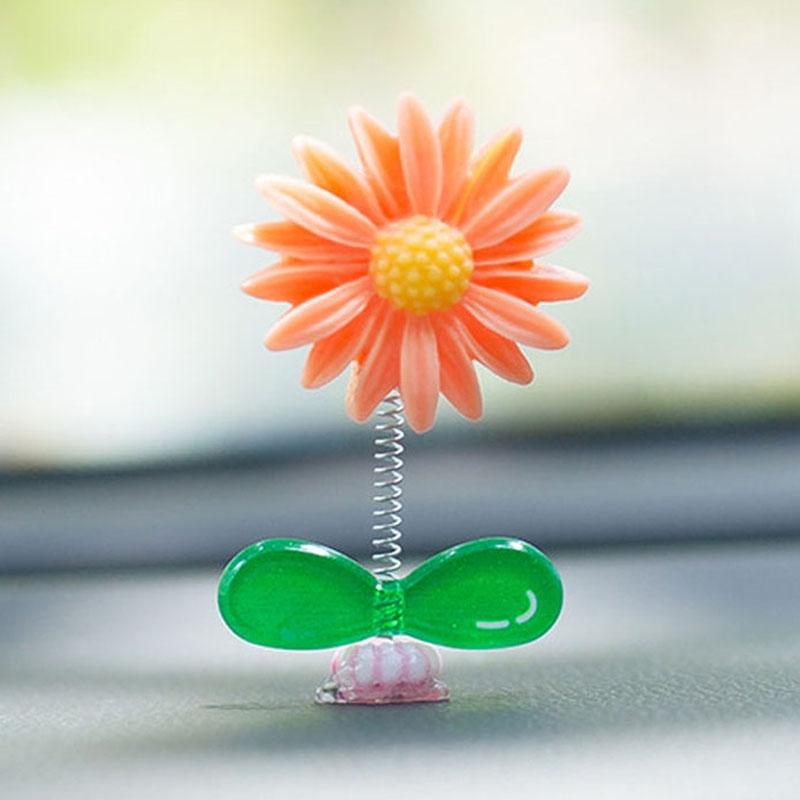 Cute Small Daisy Car Ornament Car Dashboard Shaking Decoration(Orange)