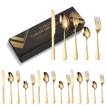 16pcs/set Carton Boxed Gold-Plated Stainless Steel Knife and Fork Set Western Cutlery, Χρώμα: Πολύχρωμο
