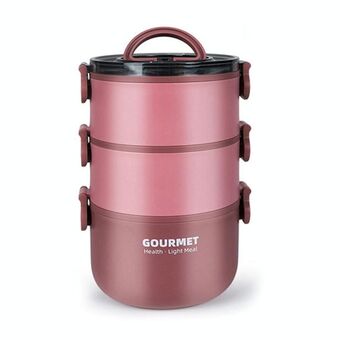 Τρι-στρώμα 2200ml 304 από ανοξείδωτο χάλυβα μόνωση μπολ φοιτητής πλαστικό κέλυφος μεσημεριανό γεύμα κουτί (κόκκινο)