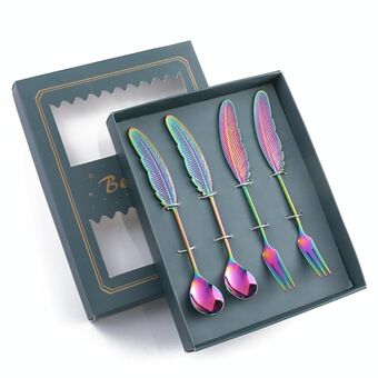 304 από ανοξείδωτο χάλυβα φτερό κουτάλι πιρούνι λογοτεχνικά επιτραπέζια σκεύη, στυλ: 4 σε 1 εκθαμβωτικό-κόκκινο κουτί