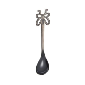 Multicolor Stainless Steel Butterfly Coffee Spoon Fruit Cold Drink Ice Cream Dessert Tea Spoon, Color:Black
