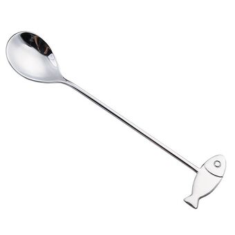 304 Stainless Steel Cartoon Pet Stirring Spoon Fork Fruit Fork Dessert Scoop, Style: Fish Spoon (Silver)