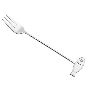 304 Stainless Steel Cartoon Pet Stirring Spoon Fork Fruit Fork Dessert Scoop, Style: Fish Fork (Silver)