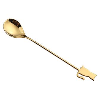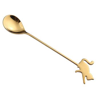 304 Stainless Steel Cartoon Pet Stirring Spoon Fork Fruit Fork Dessert Scoop, Style: Back Cat Spoon (Gold)
