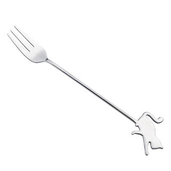 304 Stainless Steel Cartoon Pet Stirring Spoon Fork Fruit Fork Dessert Scoop, Style: Back Cat Fork (Silver)