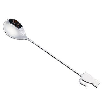 304 Stainless Steel Cartoon Pet Stirring Spoon Fork Fruit Fork Dessert Scoop, Style: Back Cat Spoon (Silver)