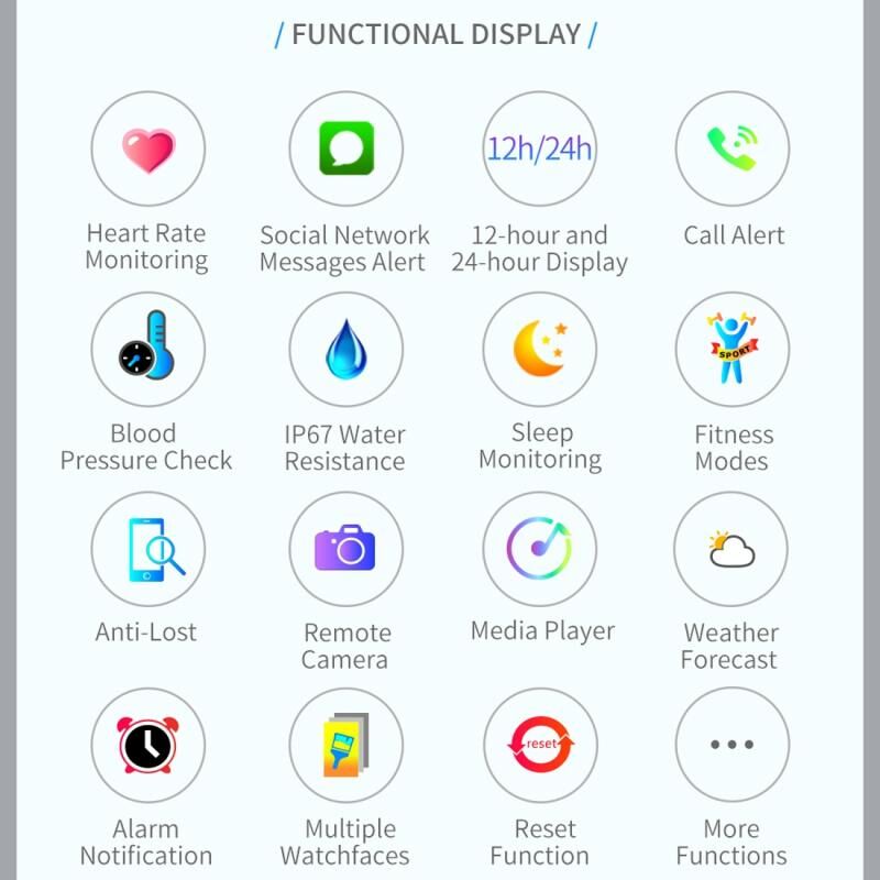 8. Function: heart rate monitoring, high heart rate reminder, blood pressure monitoring, call reminder, call rejection, GPS motion track, sleep monitoring, music control, photo control, sedentary reminder, find mobile phone, timer, brightness adjustment, alarm reminder , step by step + calories + distance, goal to reach a reminder, one-click reset