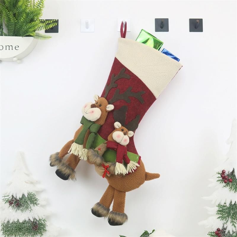CX20226 Elk Pattern Christmas Sock Gift Bag Christmas Tree Pendant Decoration
