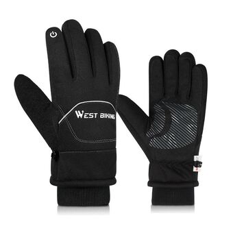 WEST BIKING YP0211221 Winter Warm Fleece Riding Gloves Non-Slip Waterproof Touch Screen Gloves, Size: M(Black) (WEST BIKING)