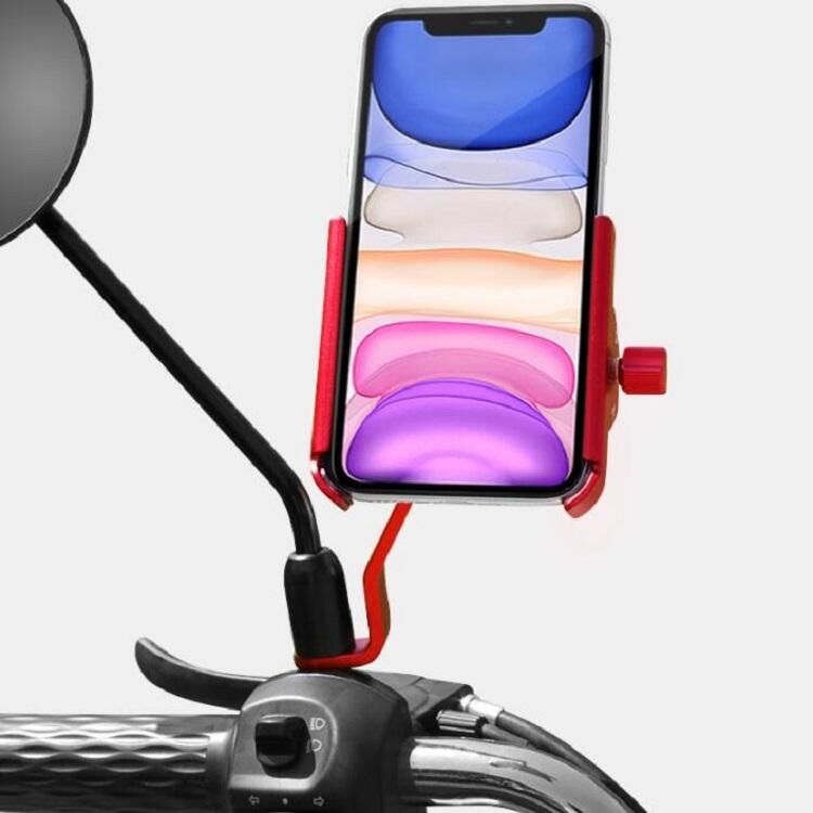 CYCLINGBOX Aluminum Alloy Mobile Phone Holder Bicycle Riding Takeaway Rotatable Metal Mobile Phone Bracket, Style:Rearview Mirror Installation(Red) (CYCLINGBOX)