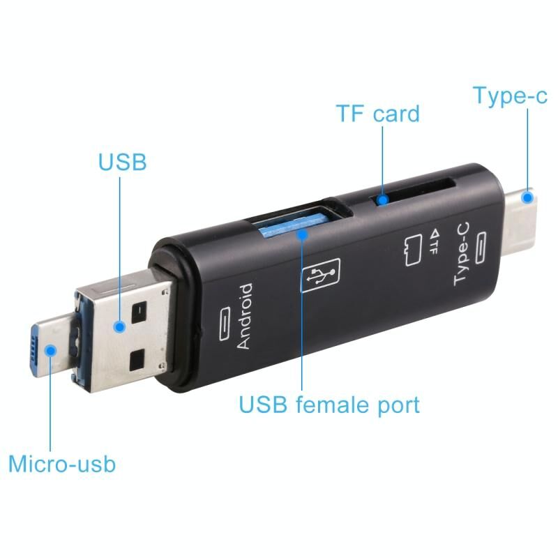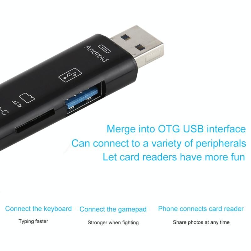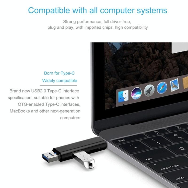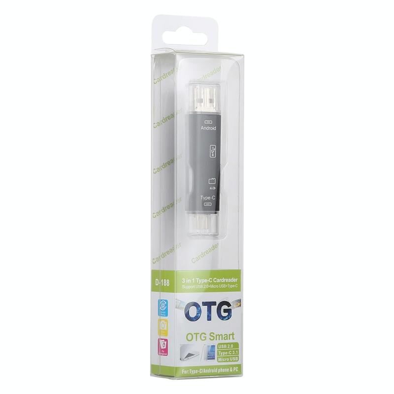 2. 3 in 1 USB 2.0 / Micro USB / TF / OTG Type C Smart Memory Card Adapter for Laptop USB 2.0 Cardreader SD Card Reader,Support USB devices such as USB interface phones ,USB flash disk, USB mouse, USB keyboard and etc.