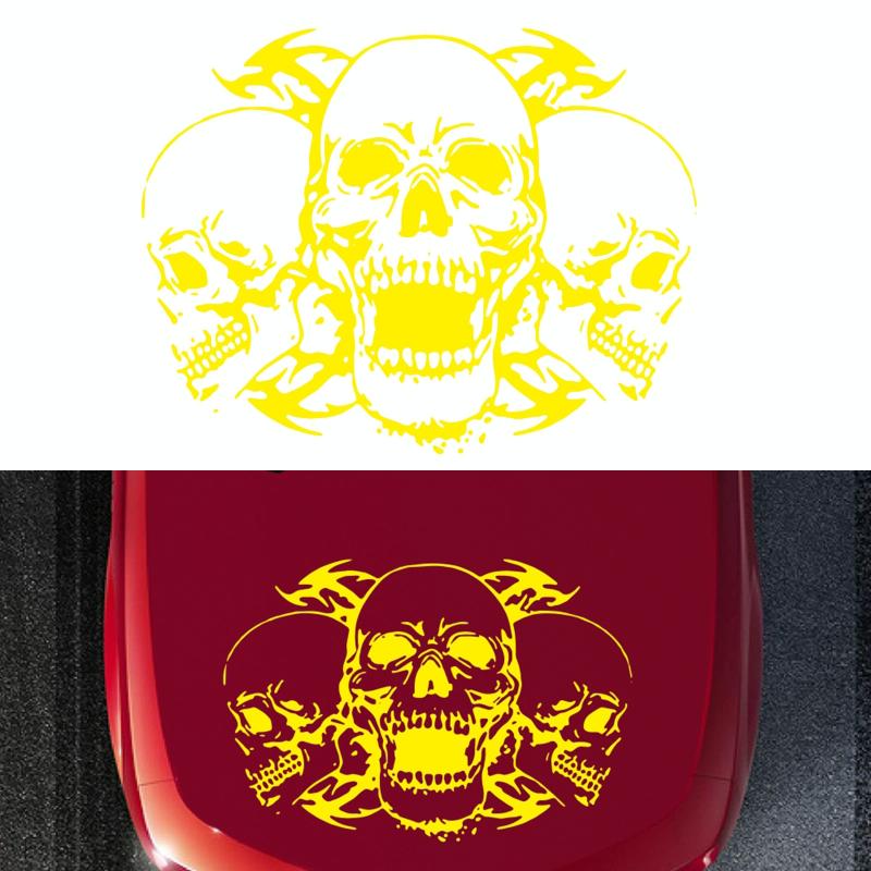 D-923 Διακοσμητικό Αυτοκόλλητο Τρεις Κρανιοί για Αυτοκίνητο (Κίτρινο)