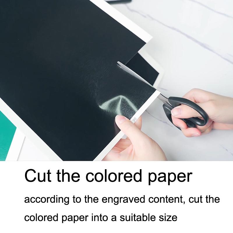 3. Κόψτε το χρωματιστό χαρτί: σύμφωνα με το χαραγμένο περιεχόμενο, κόψτε το χρωματιστό χαρτί σε κατάλληλο μέγεθος
