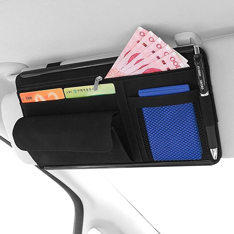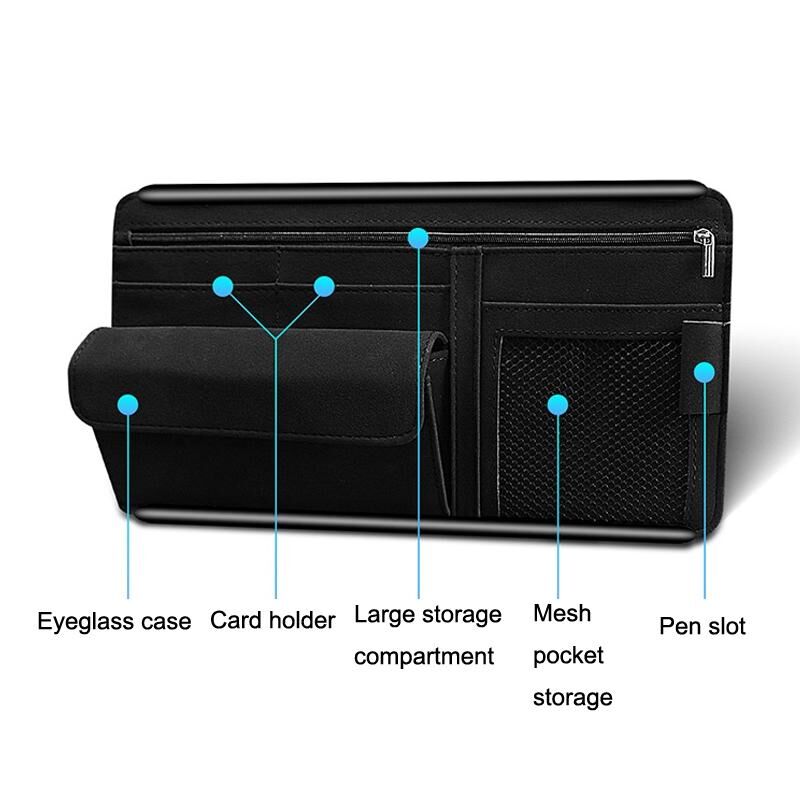 DE RAN FU Car Shade Glasses Box Storage Bag Car Flip Fur Glue Box Zipper Card Bag(Black) (DE RAN FU)