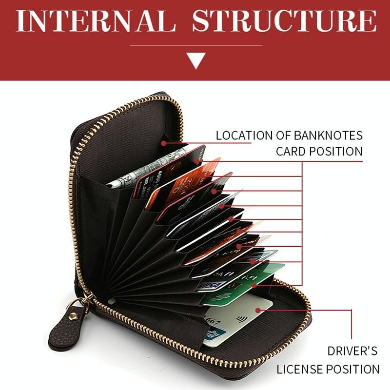 Θήκη καρτών οργάνωσης με πολλαπλές θέσεις, μεγάλη χωρητικότητα, από δερματίνη PU, με κάλυμμα ταυτότητας και πορτοφόλι κερμάτων με φερμουάρ (Μαύρο) (DEABOLAR)