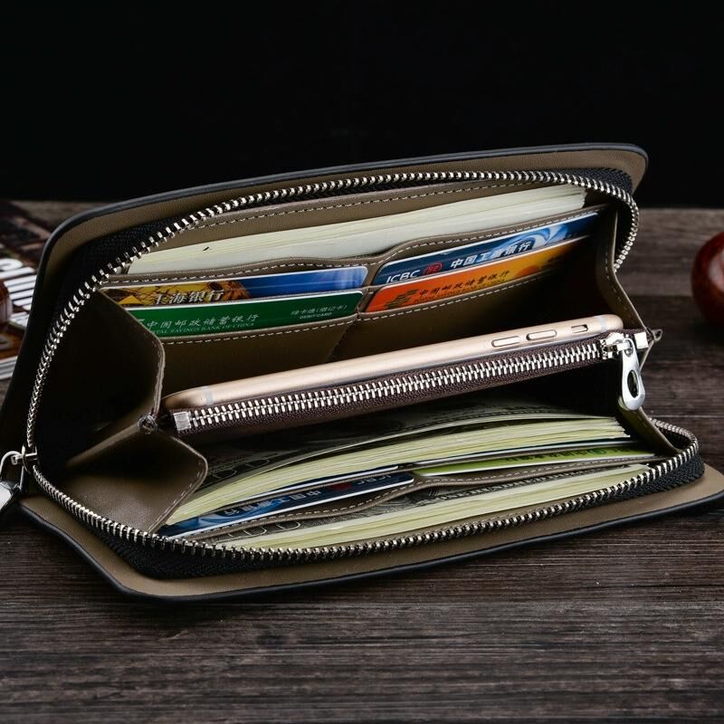 Πορτοφόλι DEABOLAR από δέρμα Saffiano, μεγάλης χωρητικότητας, με πολλαπλά διαμερίσματα και φερμουάρ (Μπεζ) (DEABOLAR)