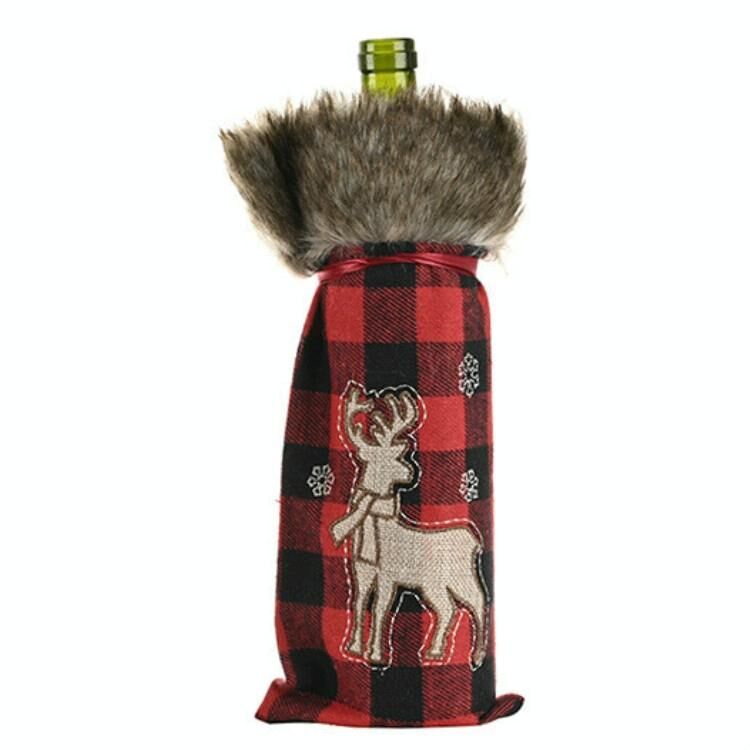 Διακοσμητικά Κόκκινο πλέγμα κρασιού σετ μπουκάλι κρασιού σαμπάνιας σπίτι Χριστούγεννα (Elk)