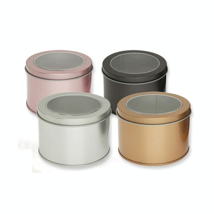 Μεταλλικό κουτί αποθήκευσης τροφίμων, τσαγιού & κέικ με διάφανο καπάκι - 9x9x6cm (Χρυσό)