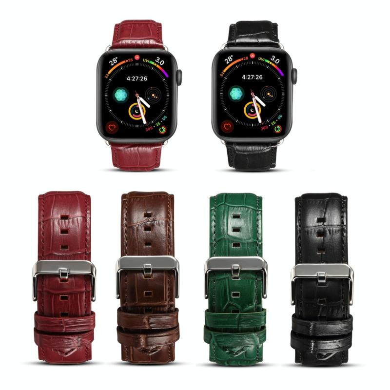Λουρί ρολογιού Denior Crocodile Grain από δέρμα αγελάδας για Apple Watch Series 7 45mm / 6 & SE & 5 & 4 44mm / 3 & 2 & 1 42mm (Καφέ) (Denior)