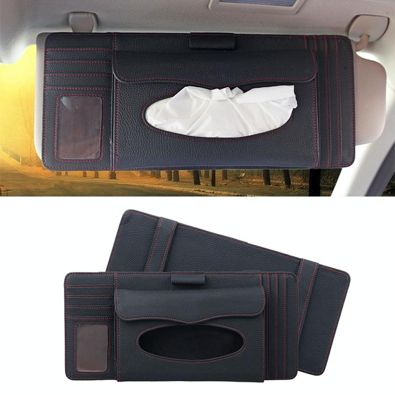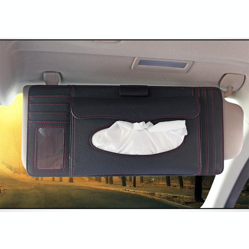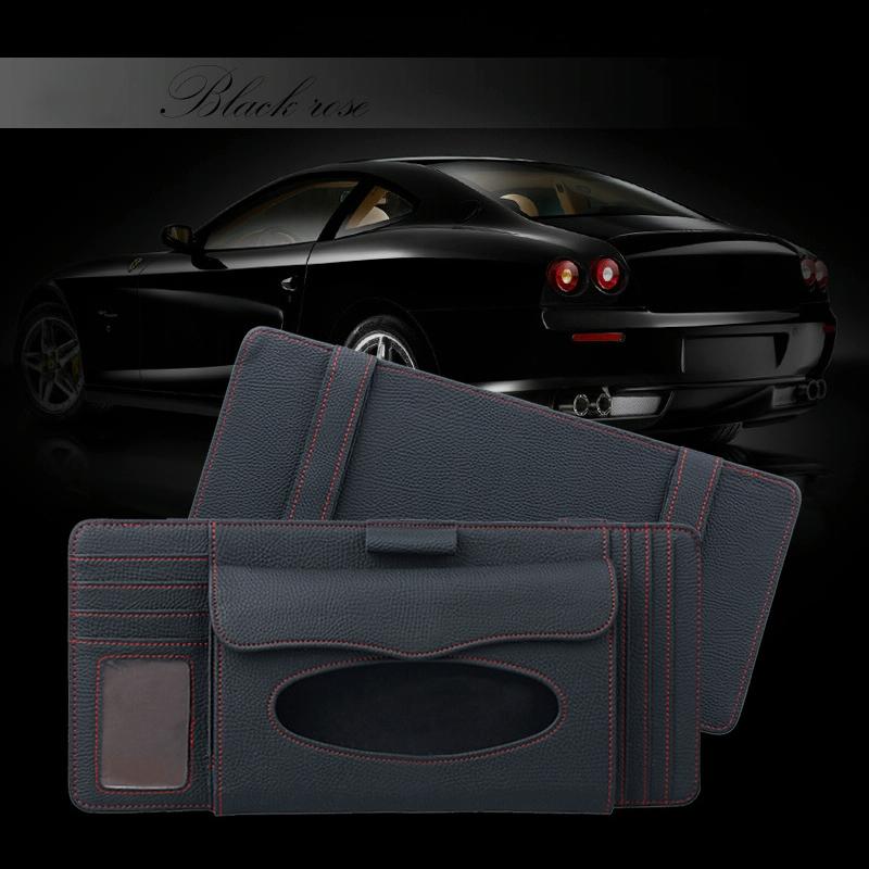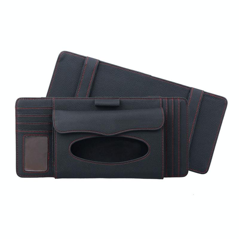 DERANFU 3 In 1 Lichee Texture Multi-function Car Hang Type Leather Towel Box with Card Slot & CD Slot(Black)