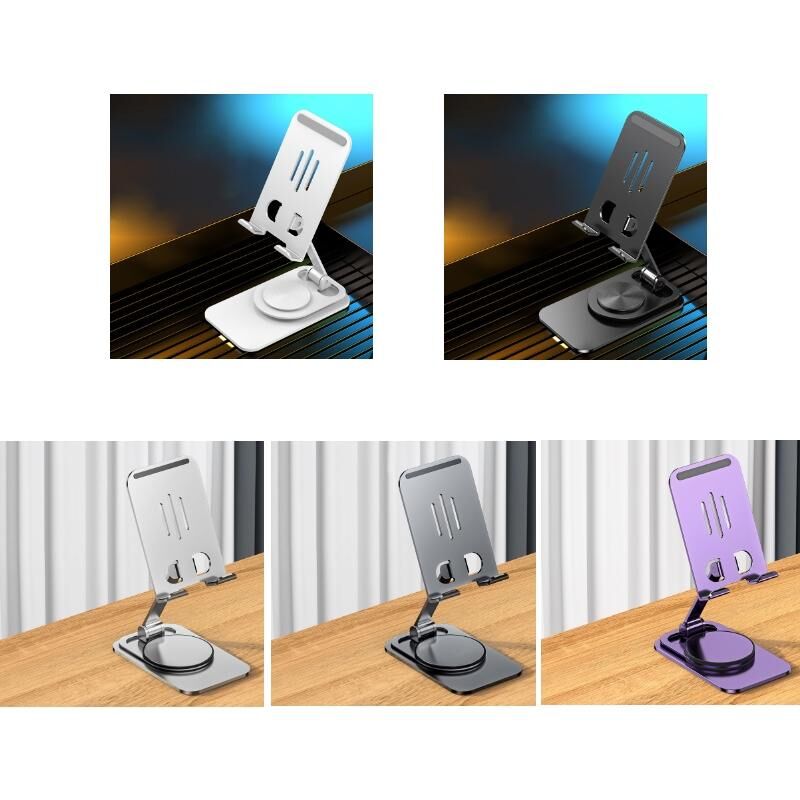 Βάση στήριξης κινητού τηλεφώνου επιτραπέζιας χρήσης, περιστρεφόμενη 360 μοιρών, αναδιπλούμενη, Χρώμα: Μαύρο ατσάλι άνθρακα.