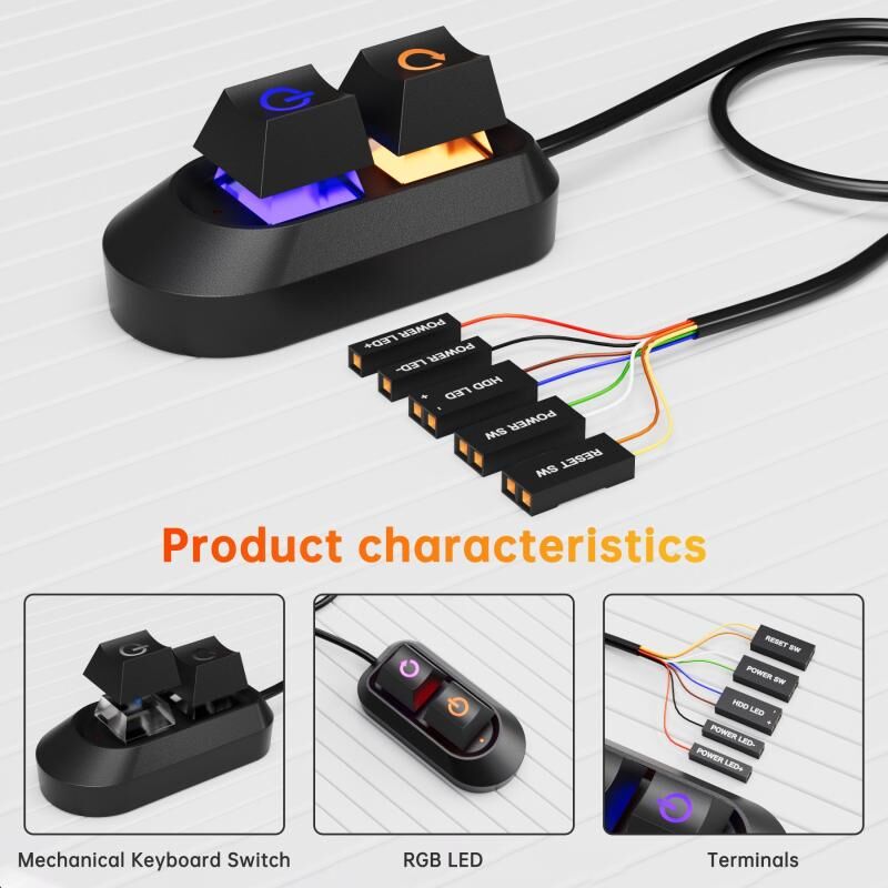 2. This extension switch has complete power-on and reboot functions, and the POWER LED and HDD LED are embodied in the external switch
