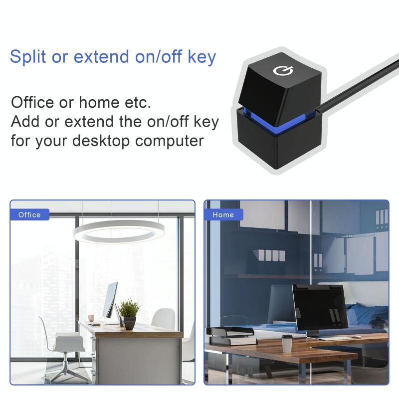 Desktop Computer Mobile Switch Computer Extension Cable Start Button, Color: Black Case Blue Light 4m Cable