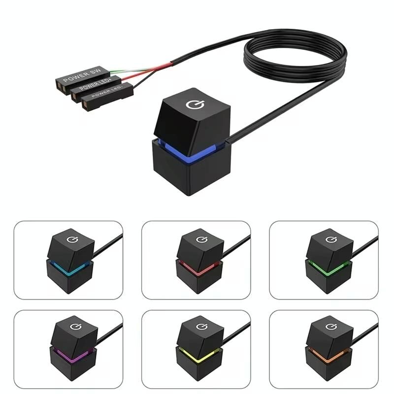 Desktop Computer Mobile Switch Computer Extension Cable Start Button, Color: Black Case Colorful Light 4m Cable