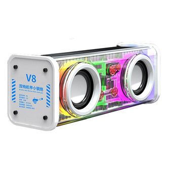 V8 Transparent Mechanical TWS Subwoofer Wireless Bluetooth Speaker(White)